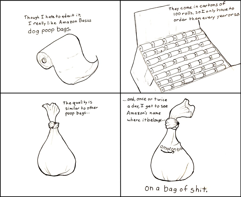 I don’t mean to hate on Amazon twice in a row. But, to be fair, they deserve it these days. Amazon used to provide a good service (despite the serious problems with worker treatment in fulfillment centres), but they’ve turned the way of all the tech giants, swinging their focus from customer service to shareholder returns. When they treat their workers better and start serving customers better (both merchant and consumer customers), I’ll happily draw a nice comic about them.
